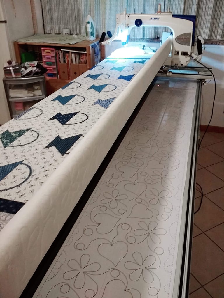 …trapuntare un quilt per altri è sempre una bella responsabilità: dare il suggerimento giusto per il motivo adatto al top, per me, è l’aspetto più impegnativo, ma che mi soddisfa tanto quanto vedere il lavoro finito.